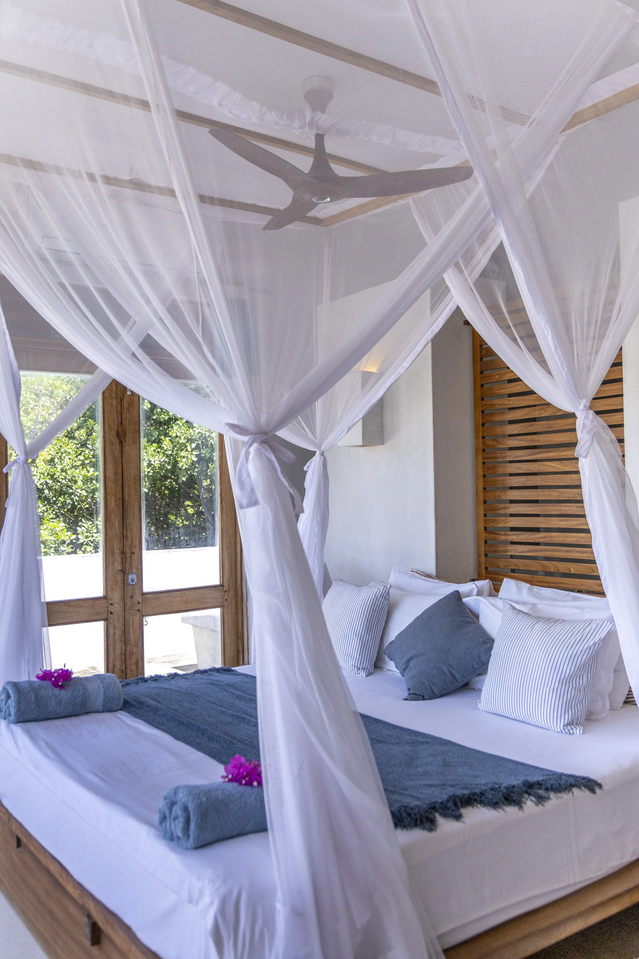 Family Suite (2 rooms): Uniting Comfort with Stunning Views. Connecting a King Size Double and Twin Room, Each with Its Own Ensuite Bathroom and Air Conditioning. The Front Bedroom Offers Captivating Views Overlooking the Majestic Indian Ocean, Elevating Your Stay to Unmatched Coastal Serenity